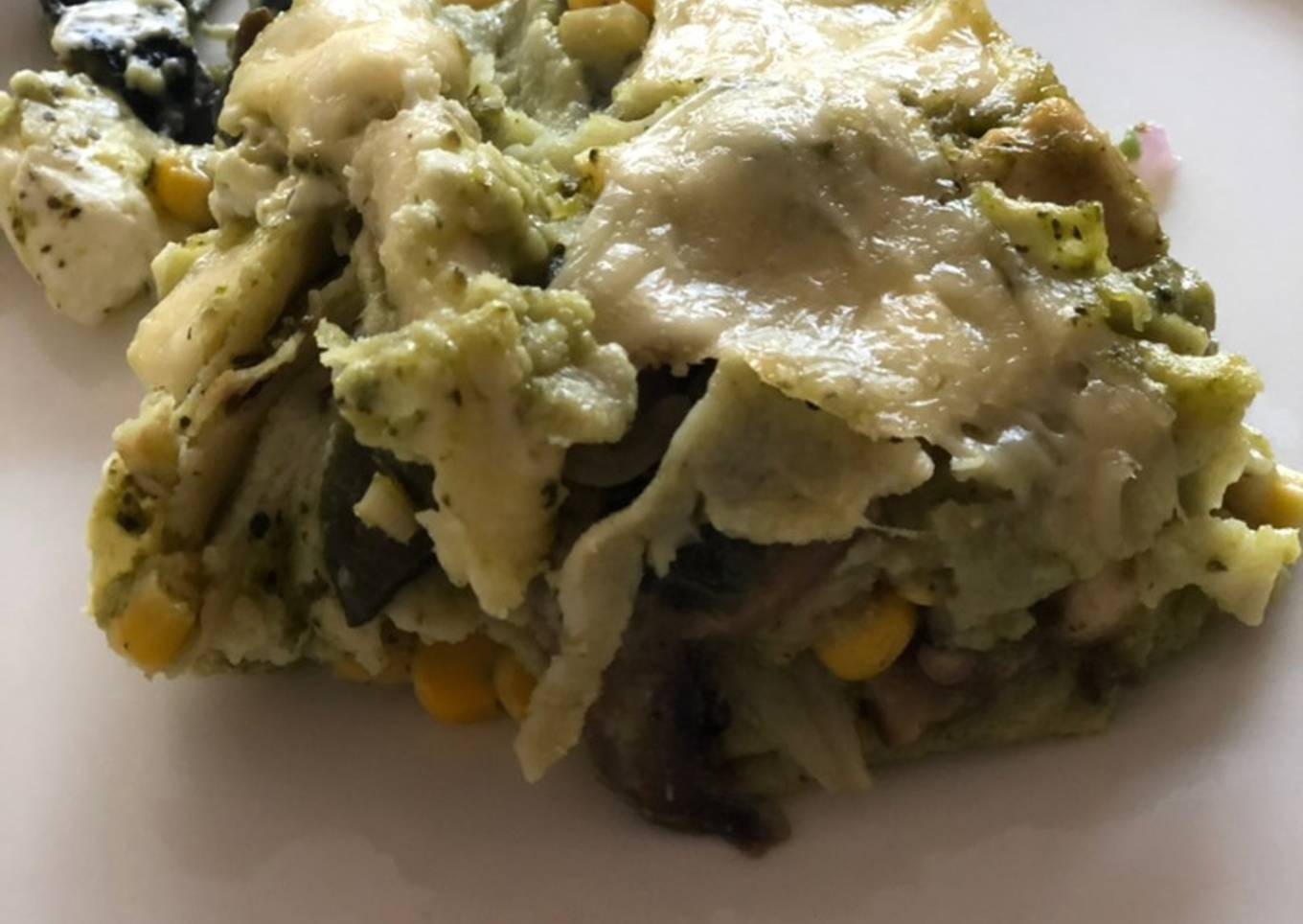 - Empezamos con una capa de tortilla, una de relleno y una de salsa, así hasta terminar con los ingredientes.