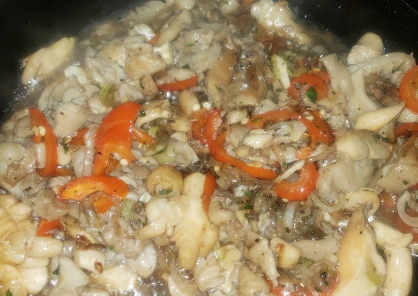 - Se fríe por dos minutos más y se añaden las setas picadas.
