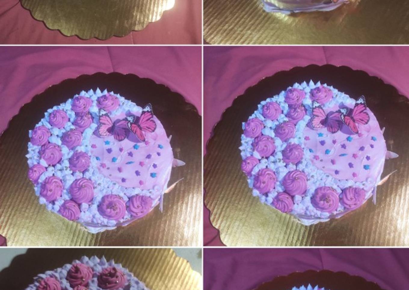 - Y decoramos a nuestro gusto. Yo hice la forma de una luna con los dos colores que ya tenía (rosa y morado), y le coloque las bolitas doradas. Finalice con las mariposas y el letrero.