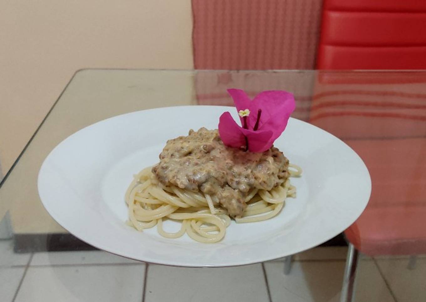 - Una vez que ya tenemos la pasta al dente la colamos y agregamos la salsa bechamel sobre la carne molida y montamos sobre el espagueti y a disfrutar