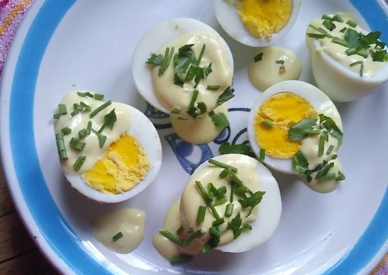 - Salsear los huevos con la mayonesa de mostaza y limón y agregarle perejil y listo, provecho.