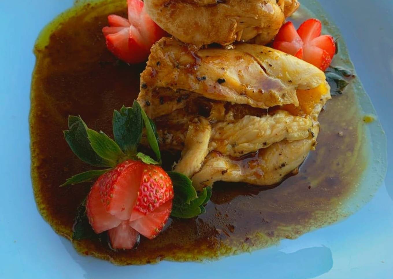 Pechuga rellena de mandarina, bañada en una reducción de naranja