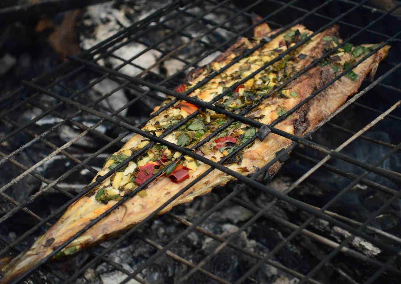 - Ya puesto el pescado en la rejilla, el pez debe de estar con el lado abierto hacia arriba, se unta con la combinación de ingredientes mientras está en el fuego, dejar de cada lado 10 min y listo.