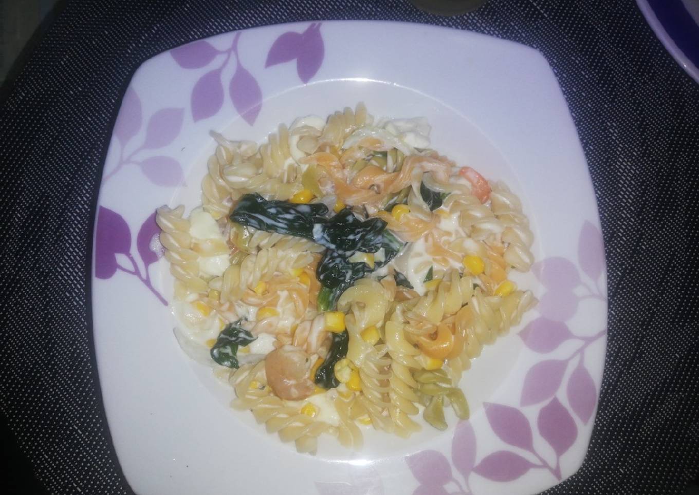 Instructions to make to make Spaghetti a la crema con espinacas y camarones