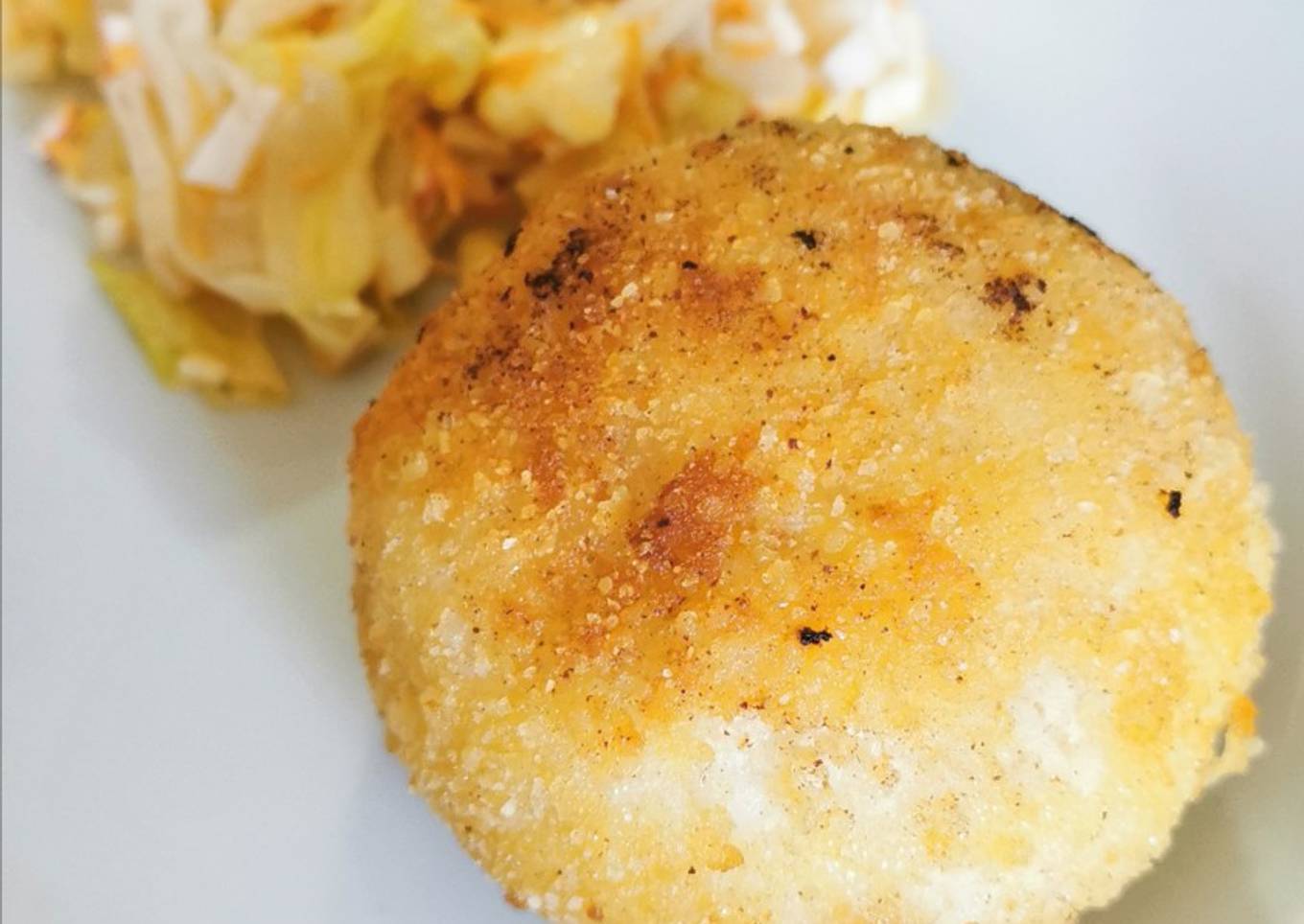 - Ya formadas, las empanizamos. Pasándola primero por el huevo revuelto y luego por el pan molido.