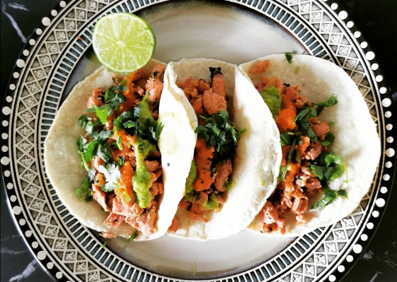 - Por último puedes armar tus tacos, yo le agregué salsa de tomate, cilantro cortadito, una salsa con picor y gotas de limón